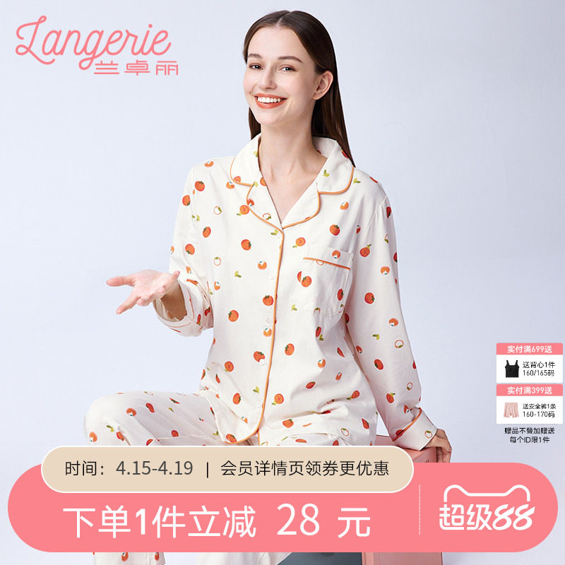 兰卓丽女士家居服上下套装上衣长袖长裤时尚印花睡衣可外穿春秋季