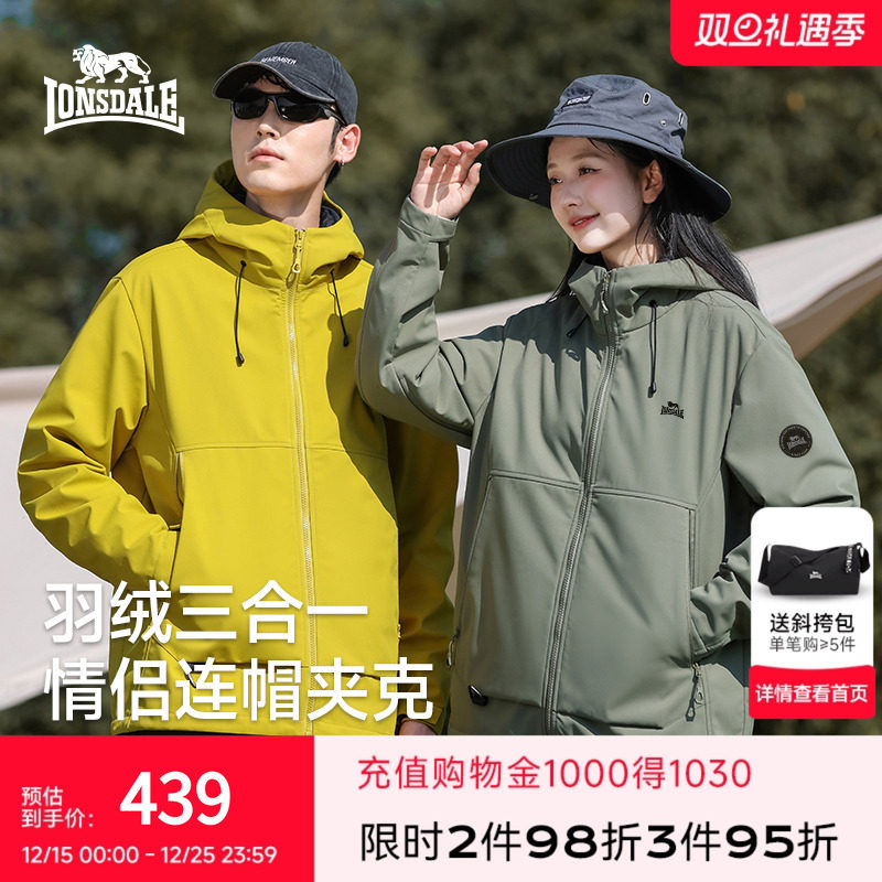 龙狮戴尔户外羽绒三合一防泼水冲锋外套男女保暖羽绒服内胆两件套