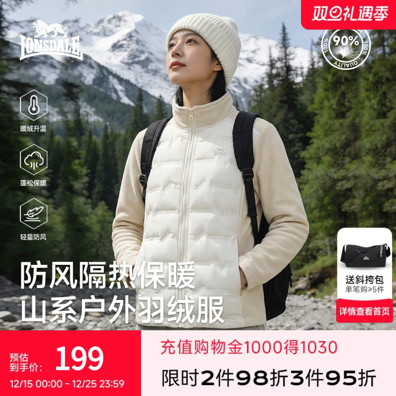 龙狮戴尔秋冬轻薄立领羽绒服冲锋衣内胆摇粒绒拼鸭绒保暖内搭男女