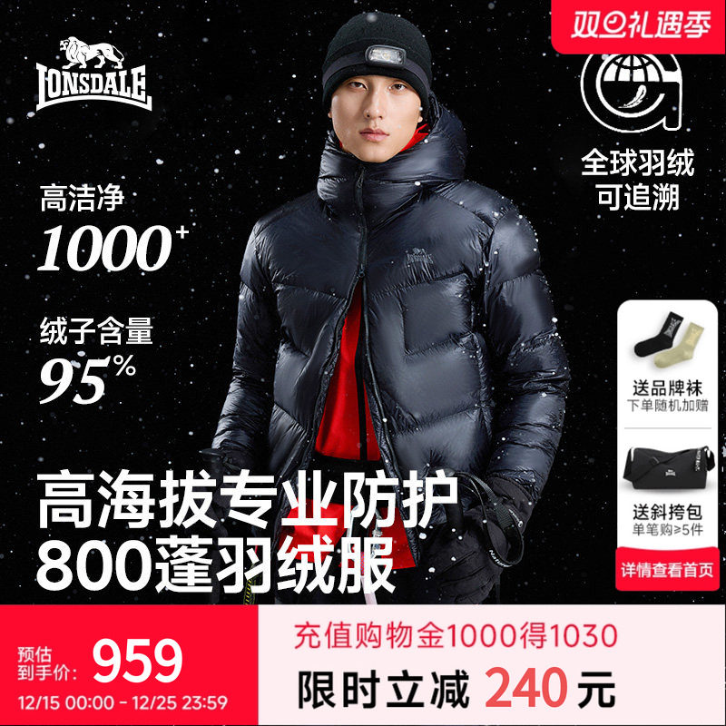 龙狮戴尔800蓬轻量羽绒服户外防风鸭绒保暖连帽羽绒厚外套男女款