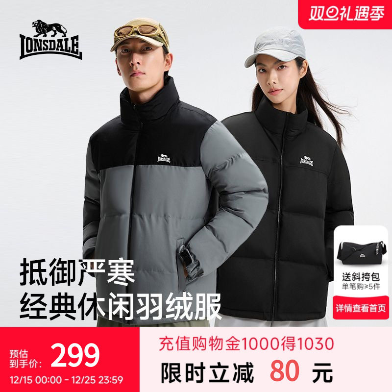 龙狮戴尔立领拼色鸭绒羽绒服男女时尚百搭加厚保暖羽绒衣外套情侣