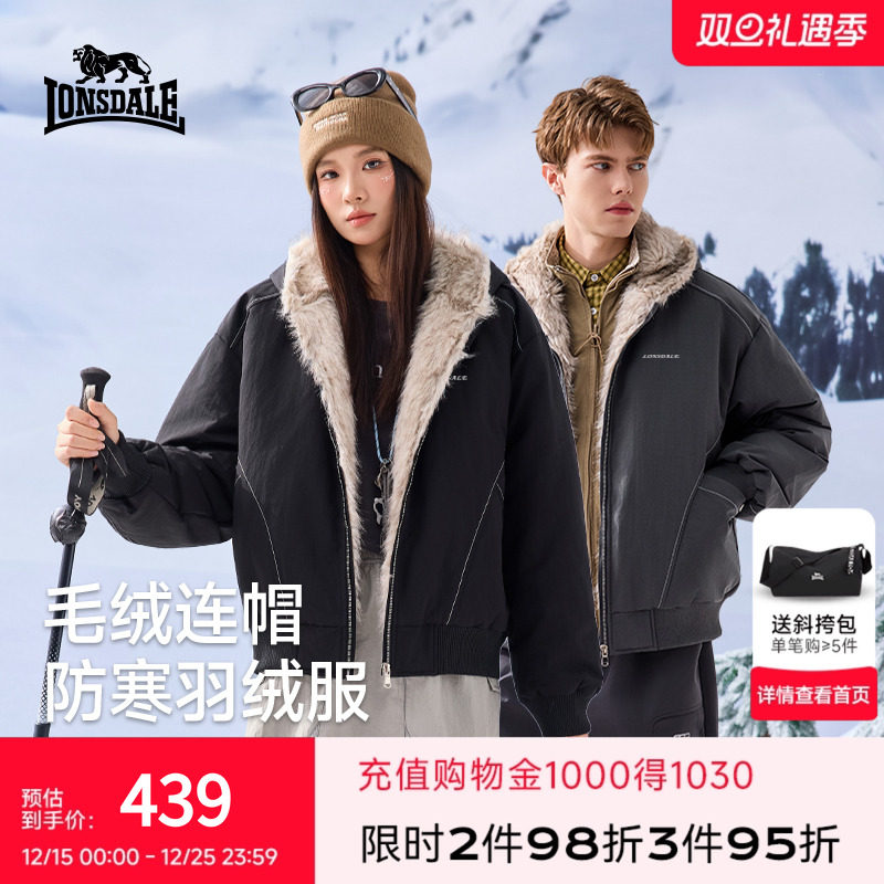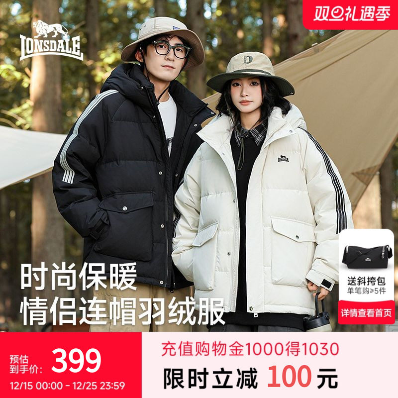 龙狮戴尔冬季新款户外连帽羽绒服男女同款蓬松保暖鸭绒面包服外套