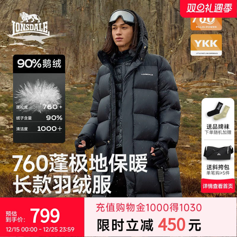 龙狮戴尔户外长款过膝保暖防风羽绒服冬2025新款加厚羽绒外套男女