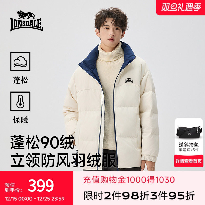 龙狮戴尔户外90立领羽绒服男女同款防风休闲蓬松鸭绒面包服情侣款