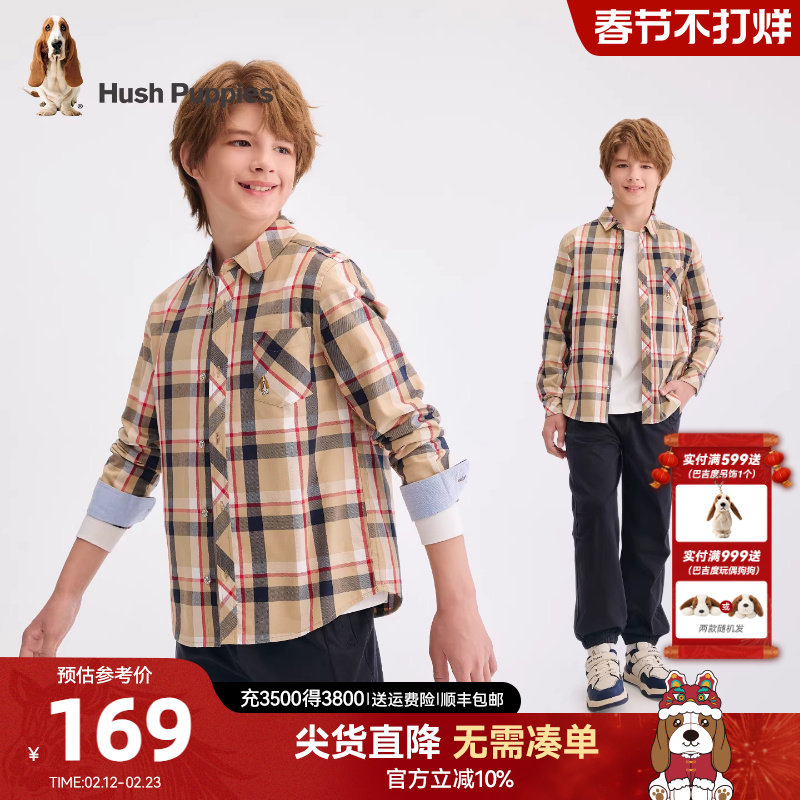 巴拉巴拉童装男童衬衫儿童上衣新款大童2025秋冬加绒保暖格子百搭