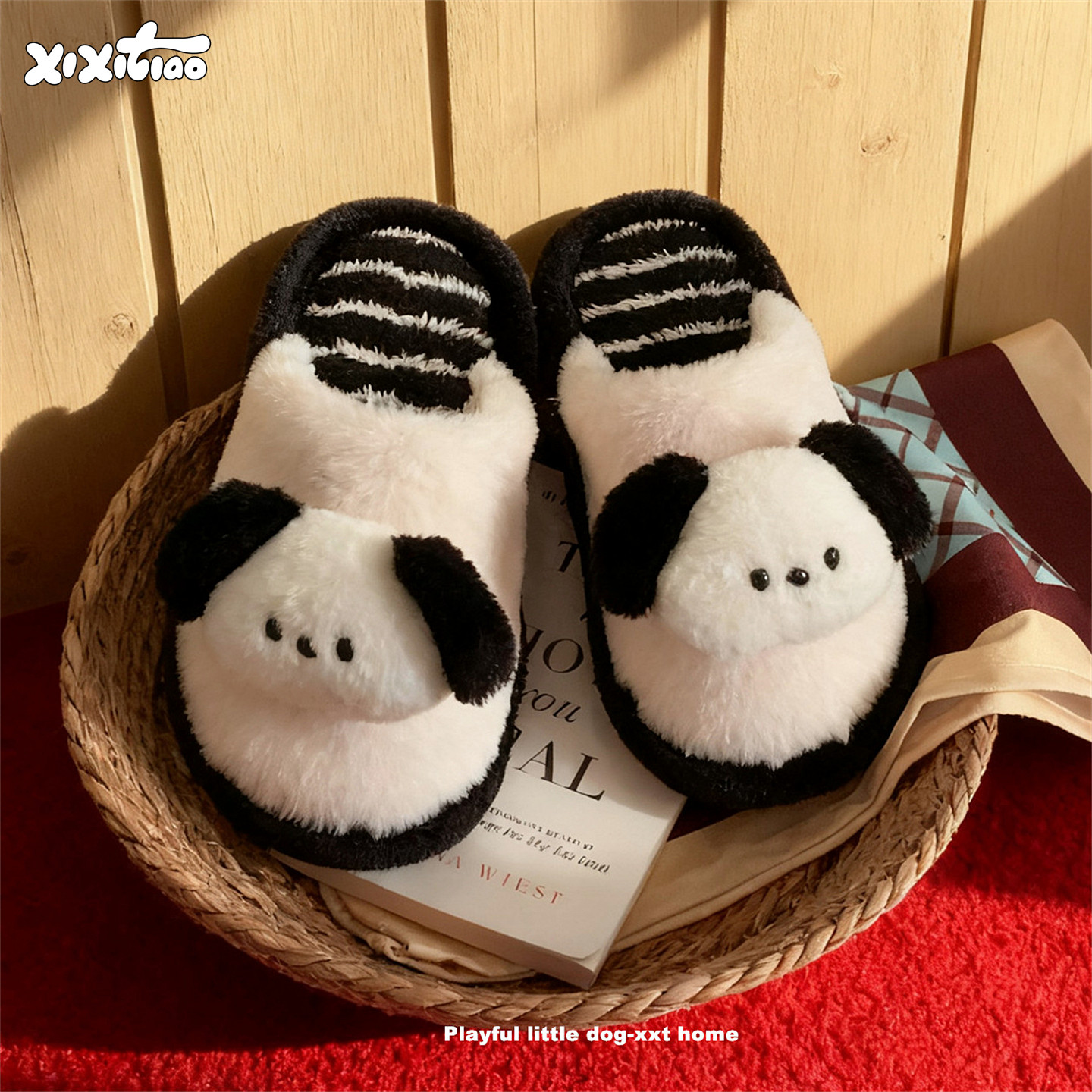 细细条 趣味可爱小狗棉拖鞋男女冬季ins情侣居家用保暖防滑毛毛鞋