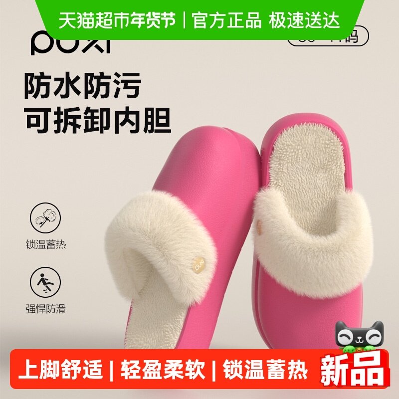 朴西棉拖鞋女款秋冬季2025新款家居室内厚底毛绒情侣棉拖鞋外穿男