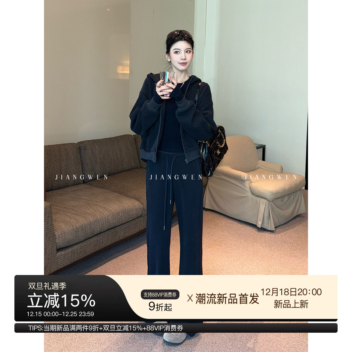 高货休闲运动连帽卫衣长裤套装女H84752秋冬拉链开衫金丝绒两件套
