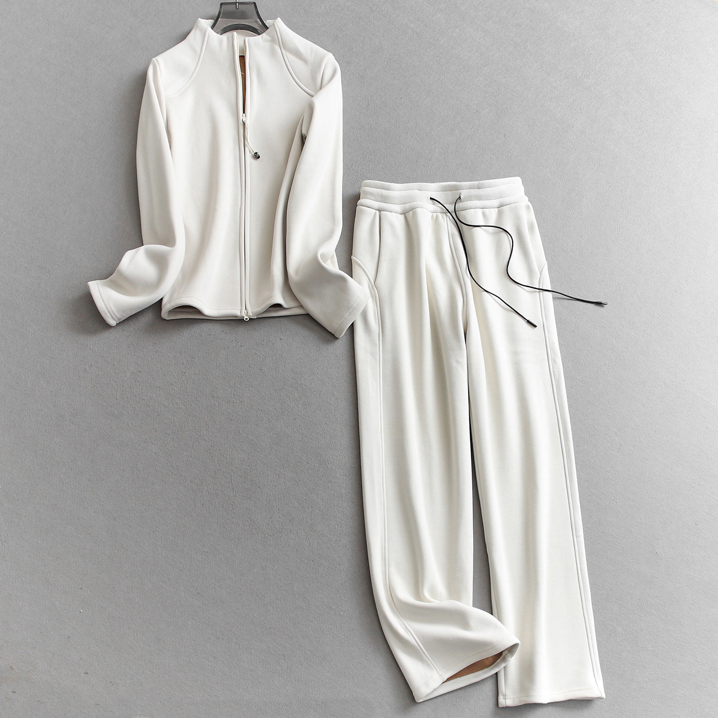 YMER加绒上衣阔腿裤两件套女2025冬加厚连帽拉链休闲运动套装0868