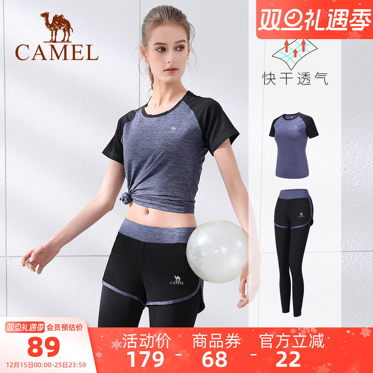 骆驼女装休闲运动套装女夏季跑步健身瑜伽服短袖T恤瑜伽裤两件套