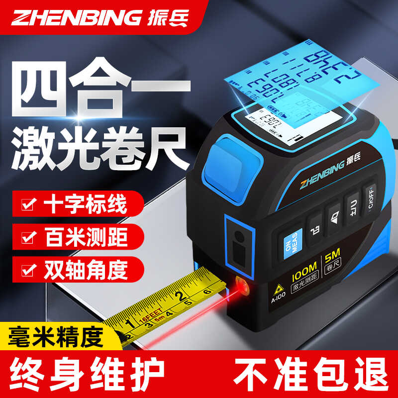 振兵激光卷尺三合一红外线测距仪智能电子测量尺十字线钢卷尺盒尺