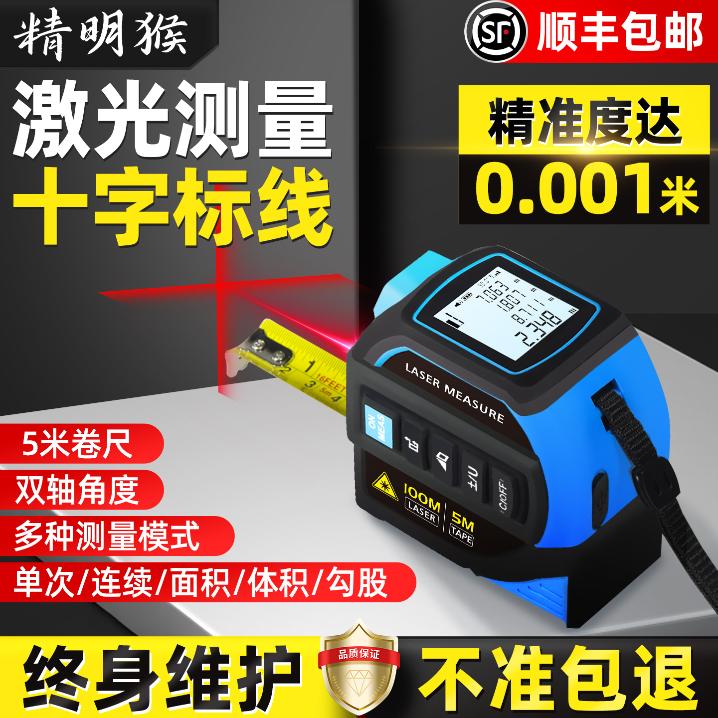 精明猴四合一高精度激光卷尺红外线测距仪十字标线电子卷尺测量仪