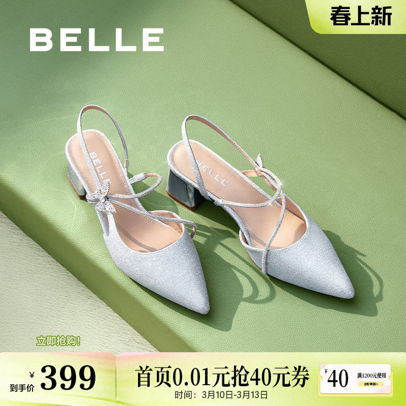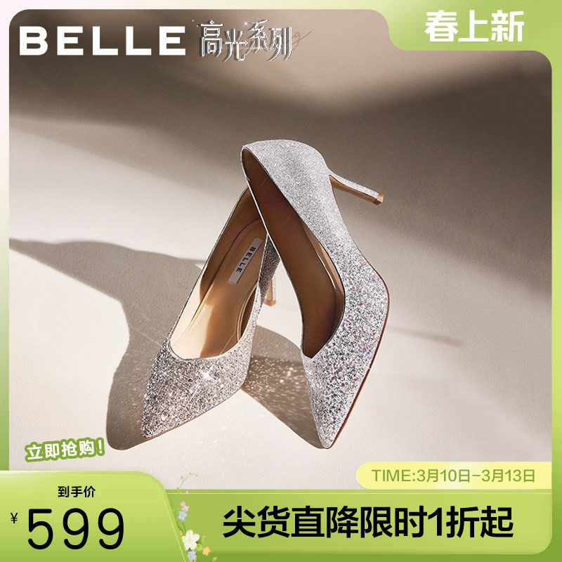 百丽细闪优雅细高跟单鞋女2026春季新款宴会新娘结婚鞋子BDAY7AQ6