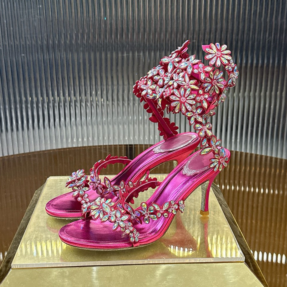 甜美水钻花朵缠绕高跟凉鞋法式仙女性感露趾水晶鞋绝美宴会婚鞋子
