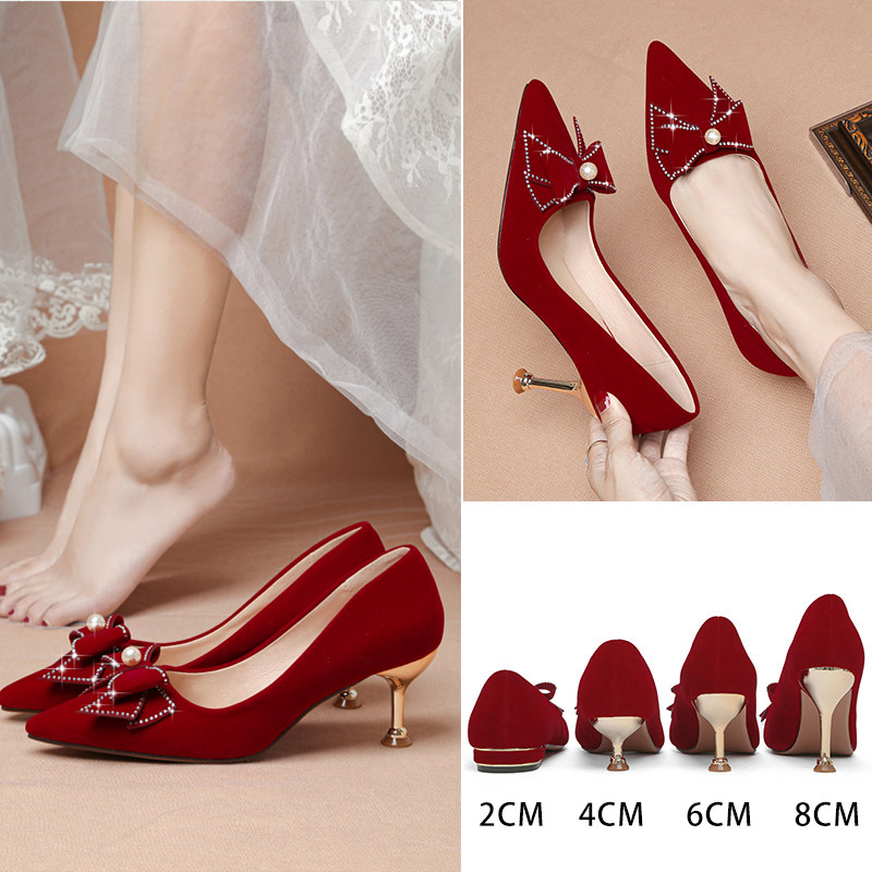 酒红色结婚鞋子女秀禾服婚纱两穿法式新娘鞋高跟小众高级感不累脚