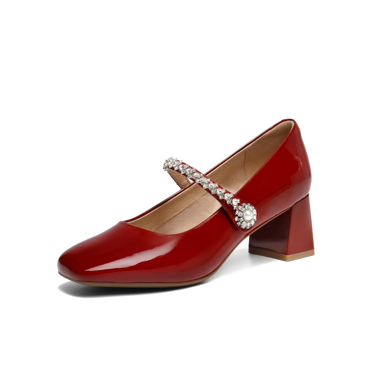 商场同款2026春季新款女鞋白月光红色粗跟玛丽珍单鞋女婚鞋子F1Y1