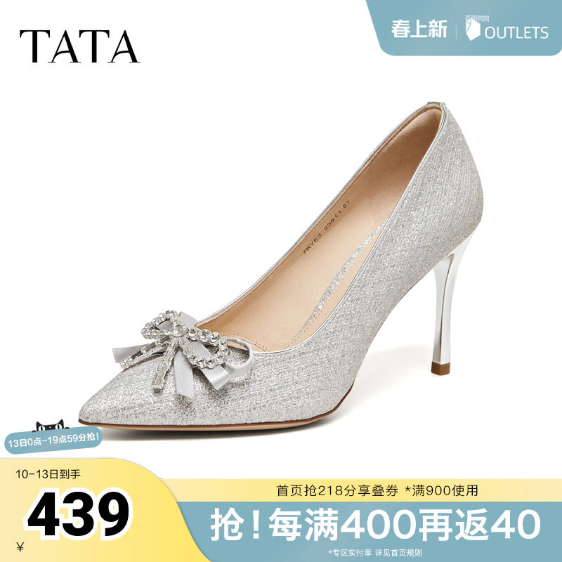 TATA他她女鞋2026春季新款浅口单鞋时尚气质高跟鞋婚鞋子7RYE3AQ6