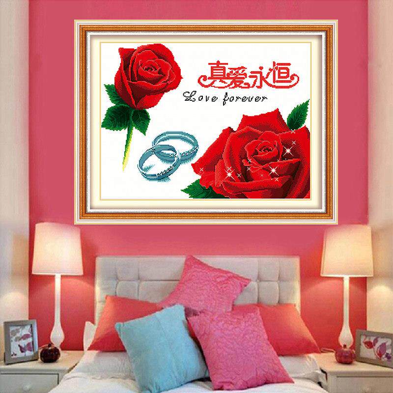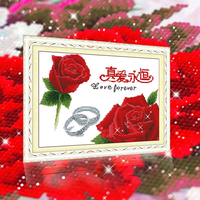 餐厅十字绣2025新款结婚用线绣玫瑰花客厅画小图真爱永恒手工小件