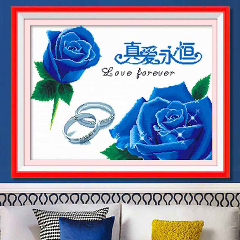 新款十字绣真爱永恒蓝色妖姬玫瑰花花卉小幅客厅十字绣画印花系列