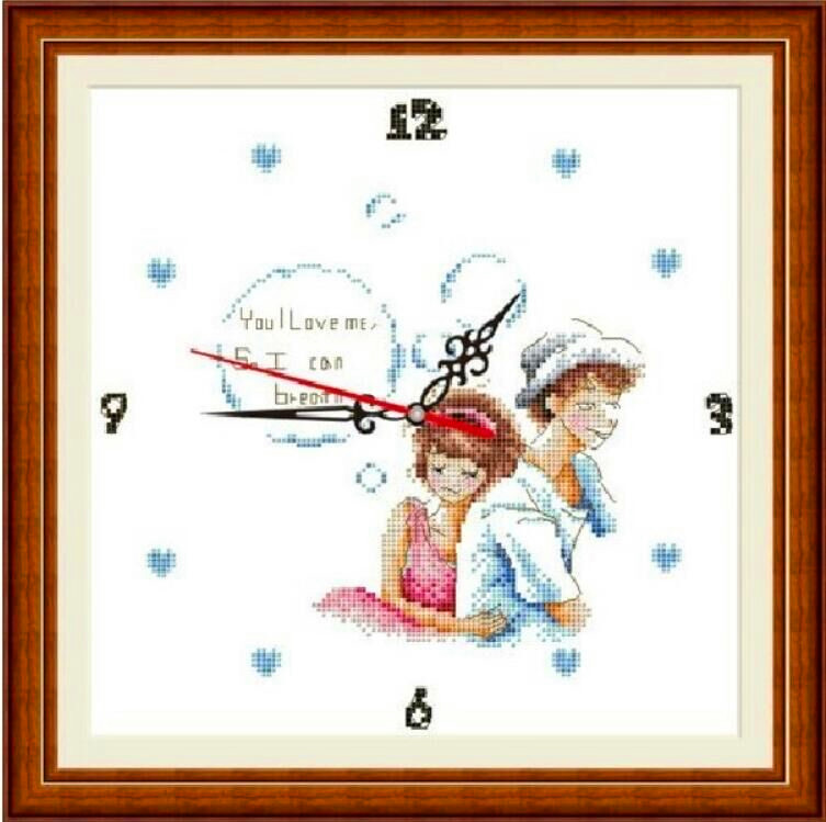 纯手工已绣好的十字绣成品一生一世爱你真爱永恒百年好合婚庆钟表