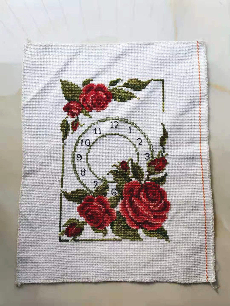 纯手工十字绣成品已绣好的手绣玫瑰花卉钟表挂钟真爱永恒约定时钟