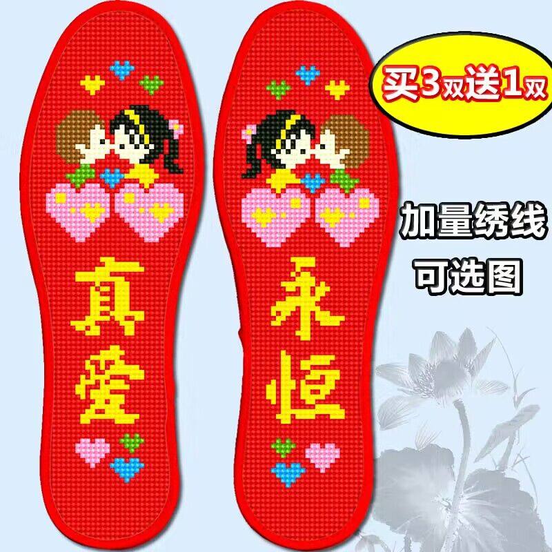 结婚新款手工十字绣鞋垫大红色 婚庆纯棉布刺绣绣花男女真爱永恒