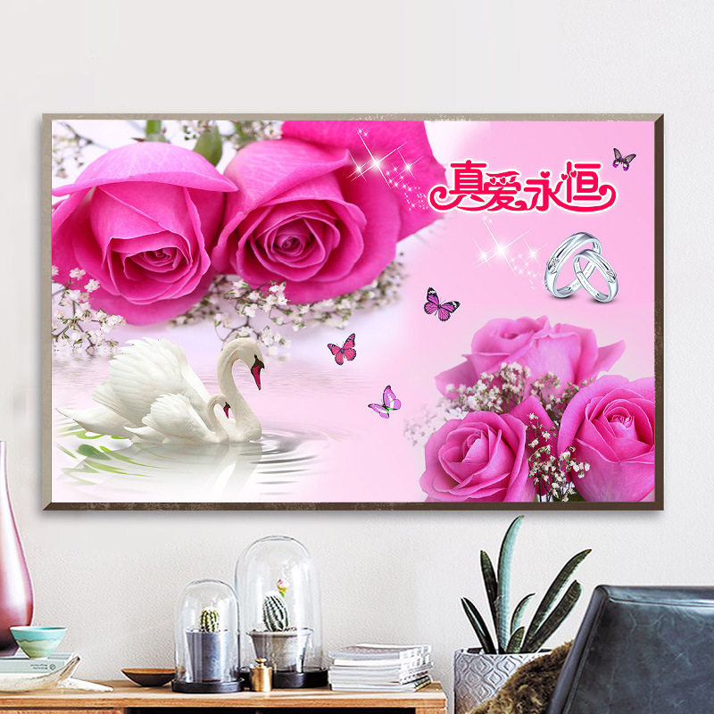 5D钻石画新婚十字绣喜庆系列结婚卧室新款客厅天鹅砖石绣真爱永恒