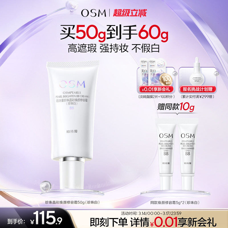 osm欧诗漫珍珠白焕颜修容霜BB霜美白隔离遮瑕粉底液裸妆清透焕亮