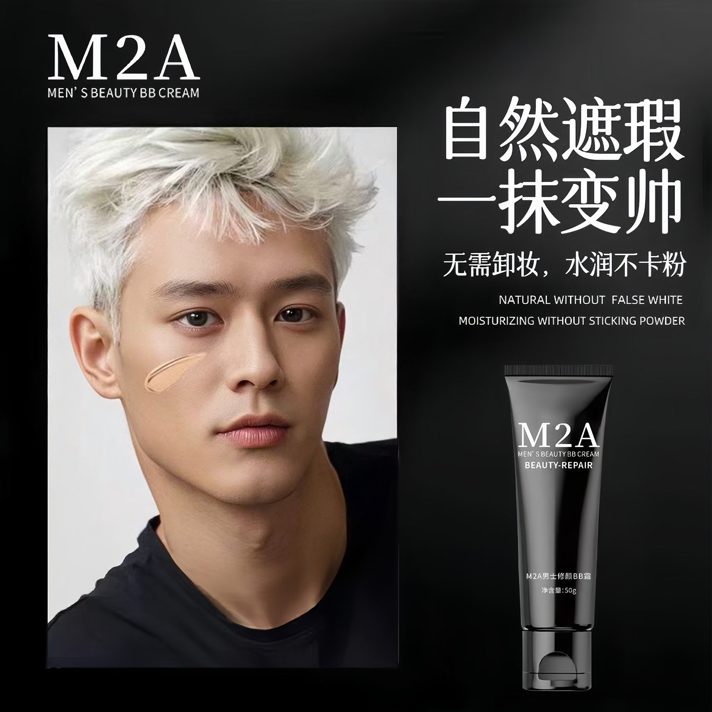 男士素颜霜BB霜痘印遮瑕膏粉底液黑管隔离乳自然不假白专用化妆品