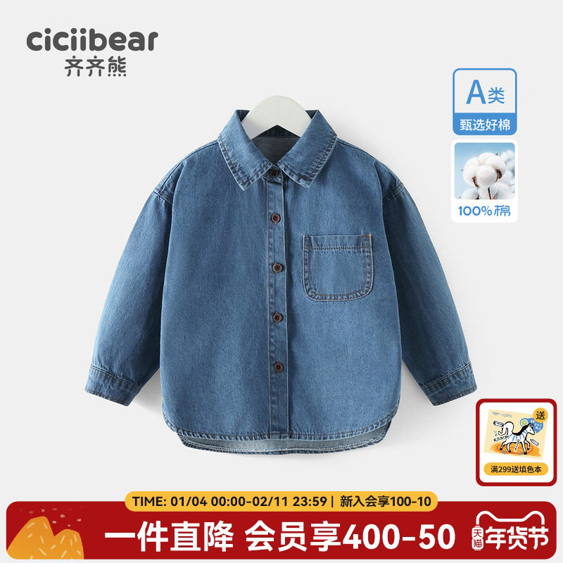 齐齐熊男童牛仔衬衫纯棉儿童春秋童装上衣宝宝休闲衬衣外套春装潮