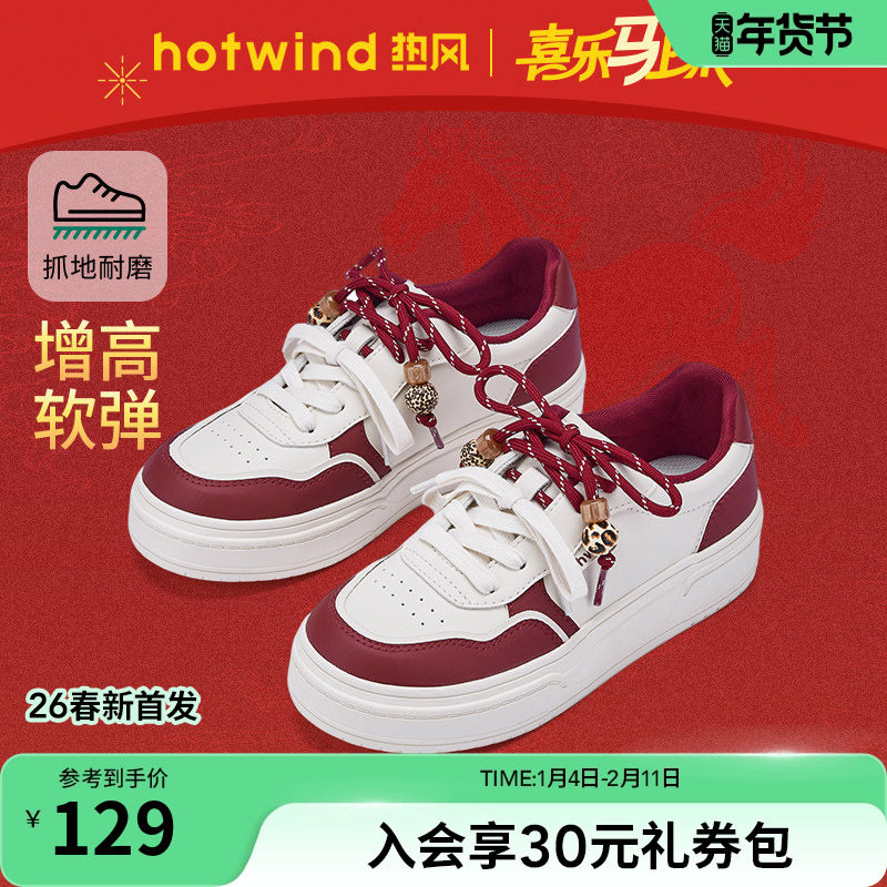 热风厚底小白鞋女款2026年春季新款百搭休闲板鞋增高面包鞋女鞋子