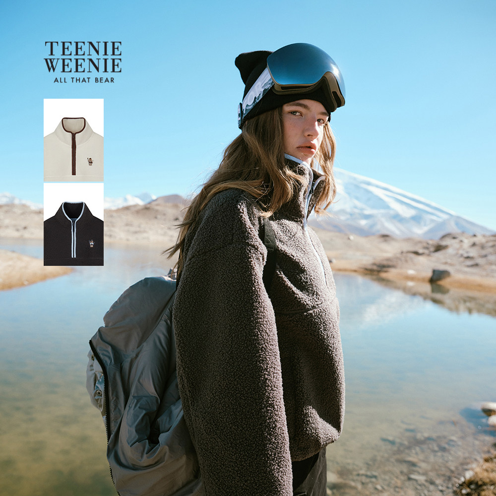 TeenieWeenie小熊女装卫衣2025年冬季新款潮酷个性半拉链立领上衣