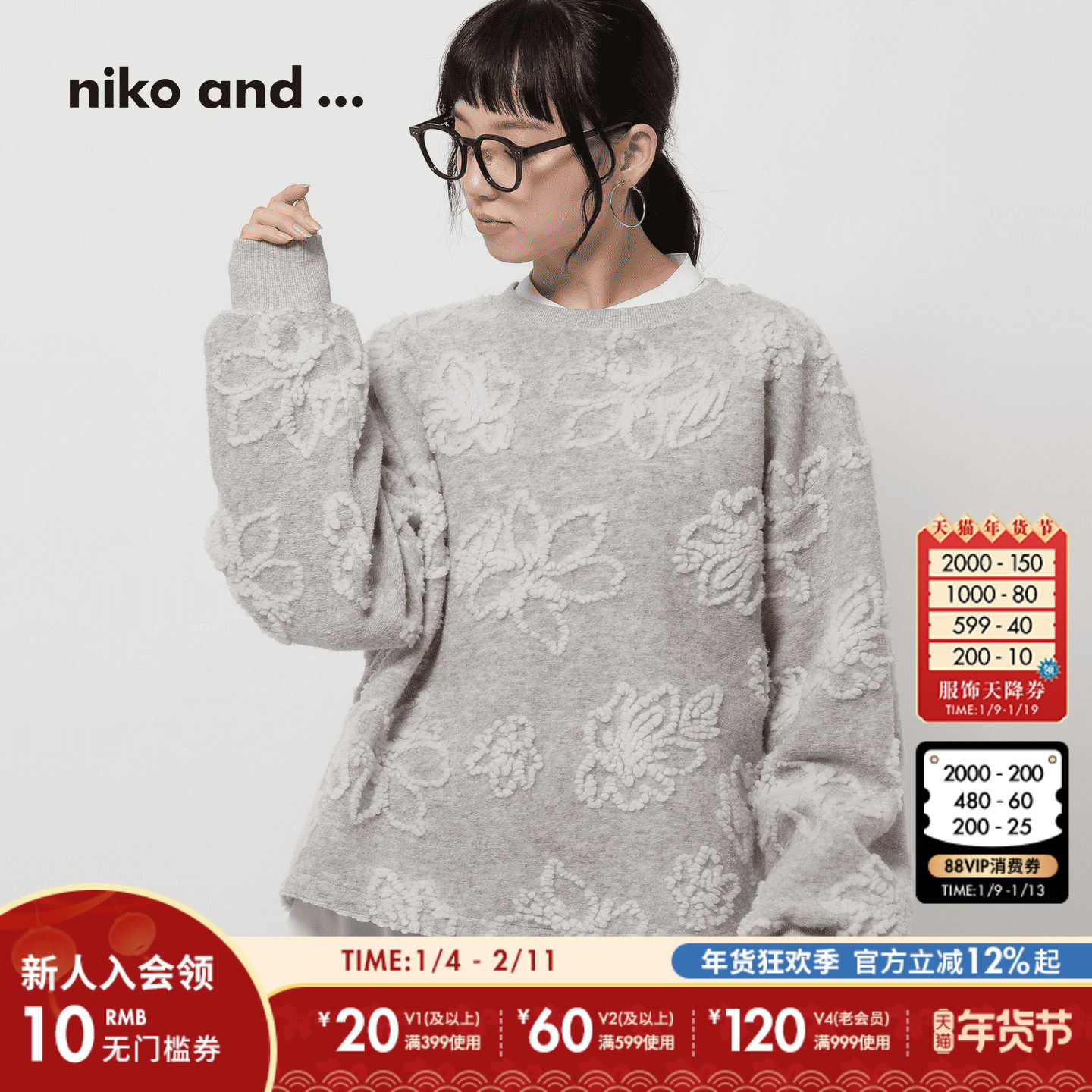 niko and ...卫衣女2025冬季新款个性潮流提花休闲上衣580663