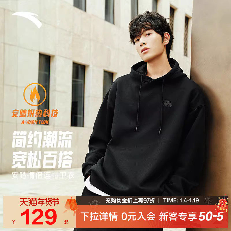 安踏经典绣标logo个性潮流卫衣男女同款时尚保暖百搭加绒套头衫