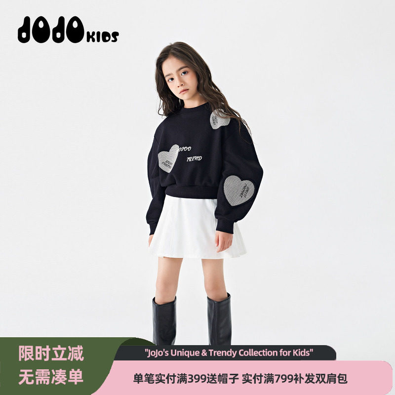 jojo童装女童秋季新款短款长袖卫衣中大童个性高腰圆领洋气百搭潮