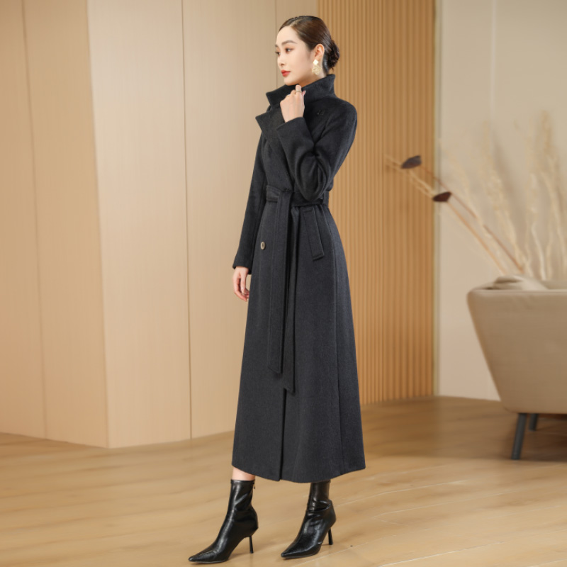 冬立领加长款羊绒大衣女修身显瘦高个子超长外套通勤花色加厚风衣