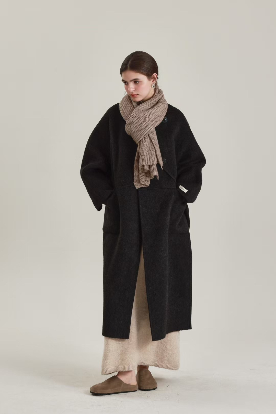 2025新款高品质牦牛绒复古圆领包包款双面羊毛大衣长款羊绒大衣女