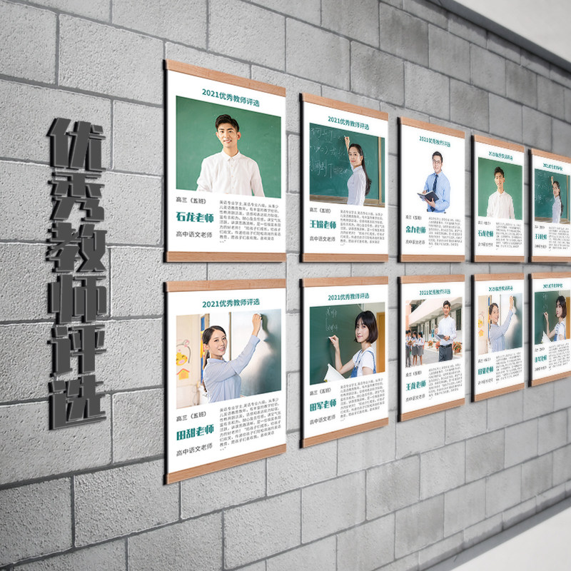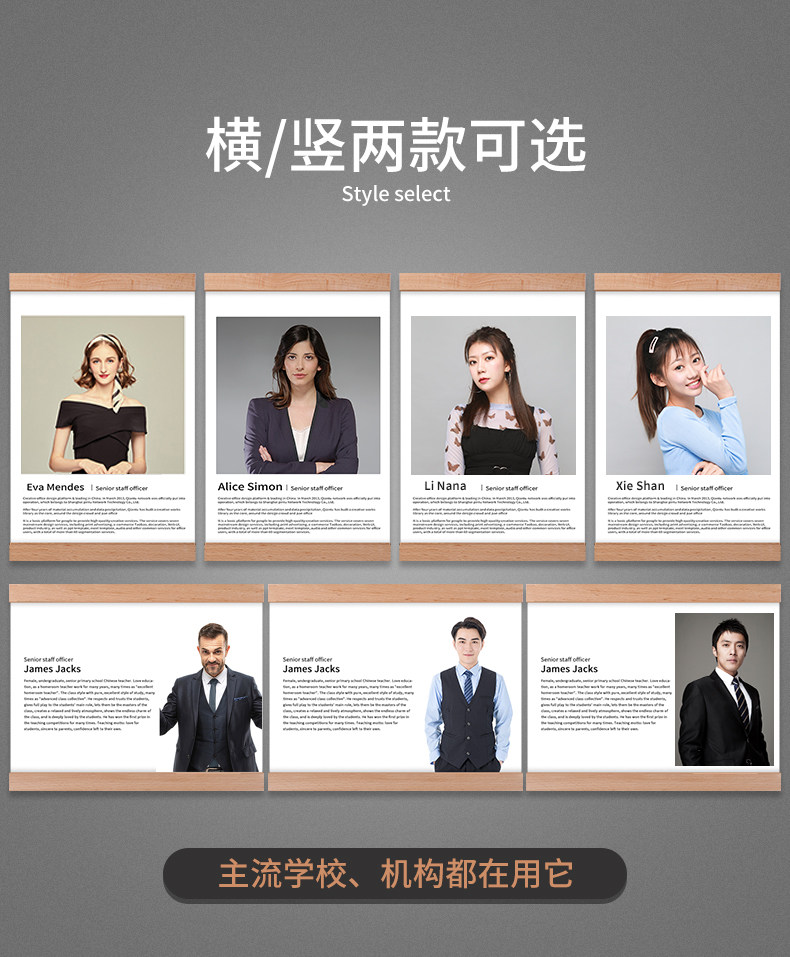 教师简介A4框架挂墙磁性展示牌A3海报形象墙亚克力实木相框免打孔
