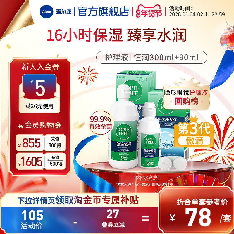 爱尔康傲滴恒润隐形眼镜护理液美瞳透明片白片清洗液药水杀菌便携