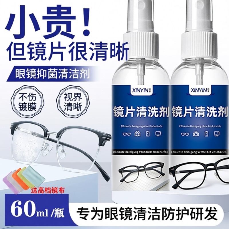 眼镜清洗液眼睛喷雾清洁水擦镜片专用水清洁剂眼镜布眼镜液护理液