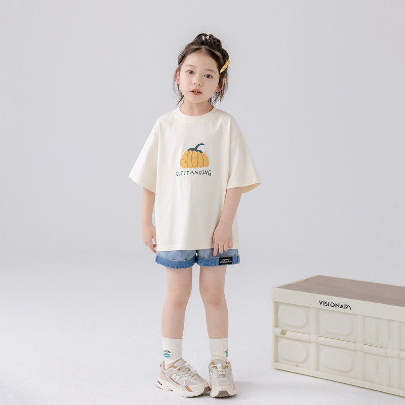 白色卡通女童学生短袖t恤2026新款中大童夏季宽松女孩半袖上衣体