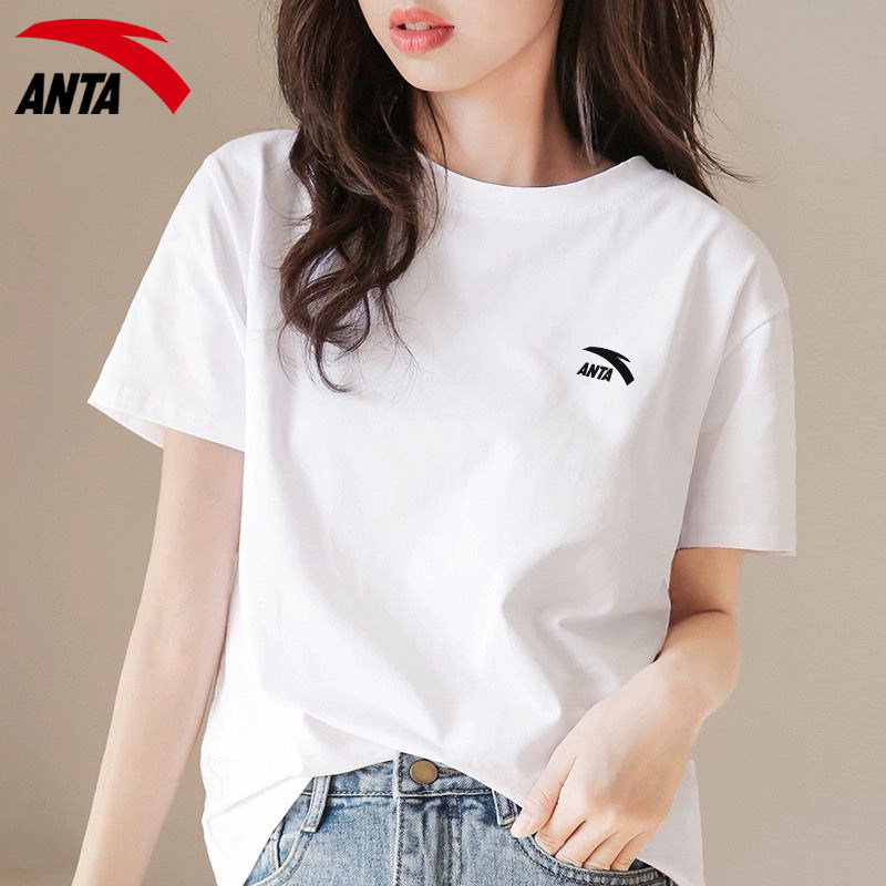 安踏白色t恤女短袖大码宽松正品夏季新款百搭学生休闲正品半袖女