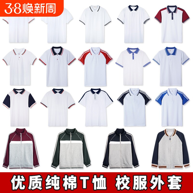 中学生校服短袖T恤男女夏季小学生白色上衣儿童polo衫初中生班服