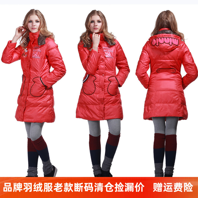 清仓特价迪士尼女装羽绒服加厚长款过膝少女装白鸭绒冬装连帽外套