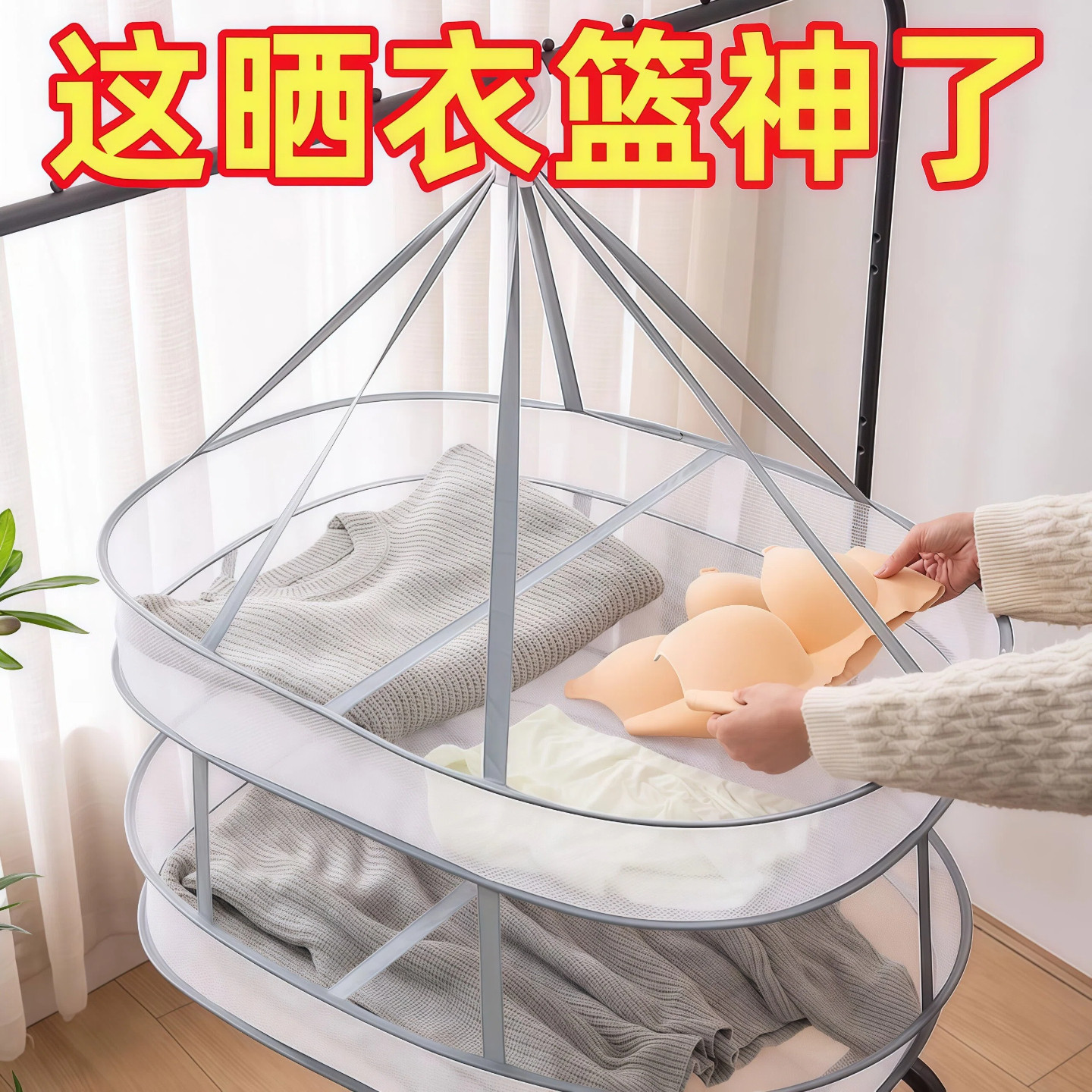 可折叠晾衣篮防变形晾晒网家用晒衣网双层晾衣服的网兜毛衣晒衣篮