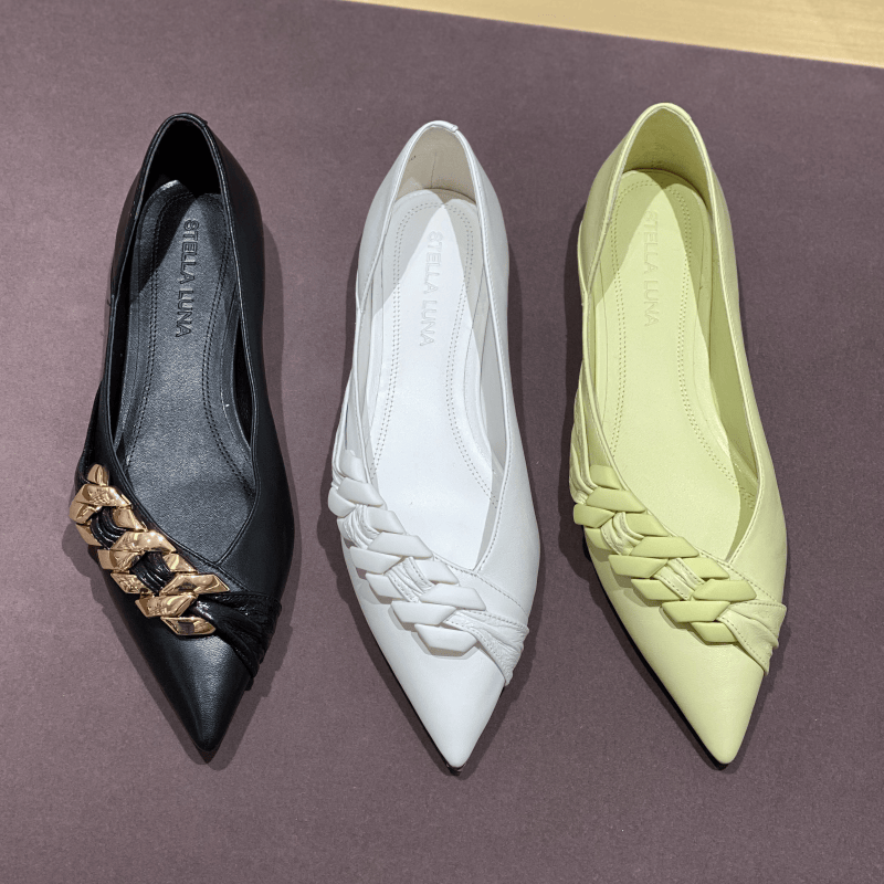 COLORBALLET彩色巴黎小香风高品质全真皮女外穿平底鞋尖头真皮底