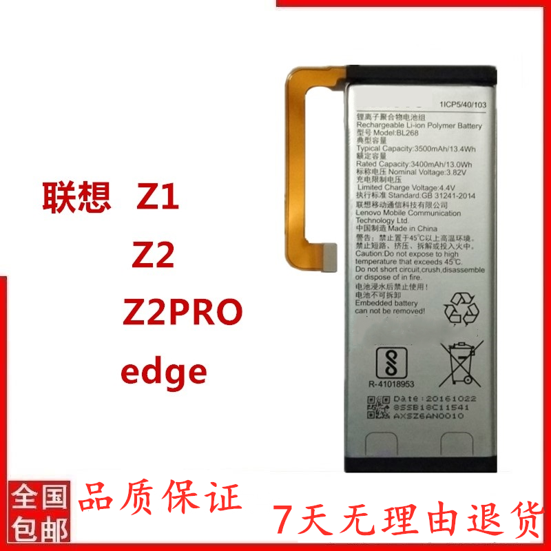 BL268联想ZUK手机Edge自由客Z2151正品Z2121Z2131Z2pro电池Z1Z1221原装Z90-7/3电板X3C50C70K51c78乐檬X3Lite
