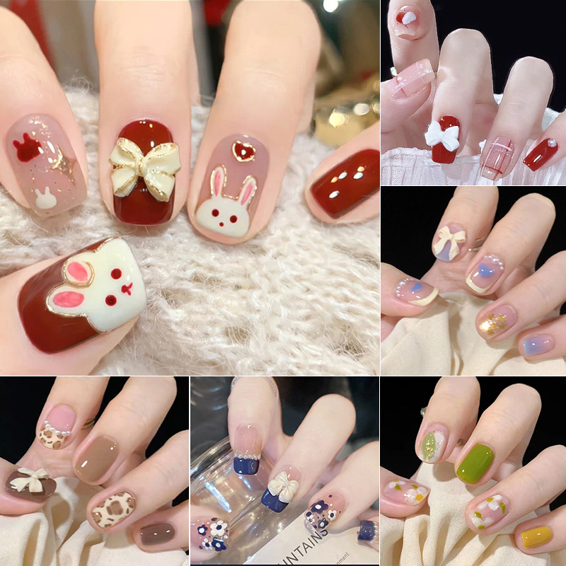 人气爆款网红蝴蝶结指甲贴纸5D立体防水显白美甲凝胶自粘甲油膜贴