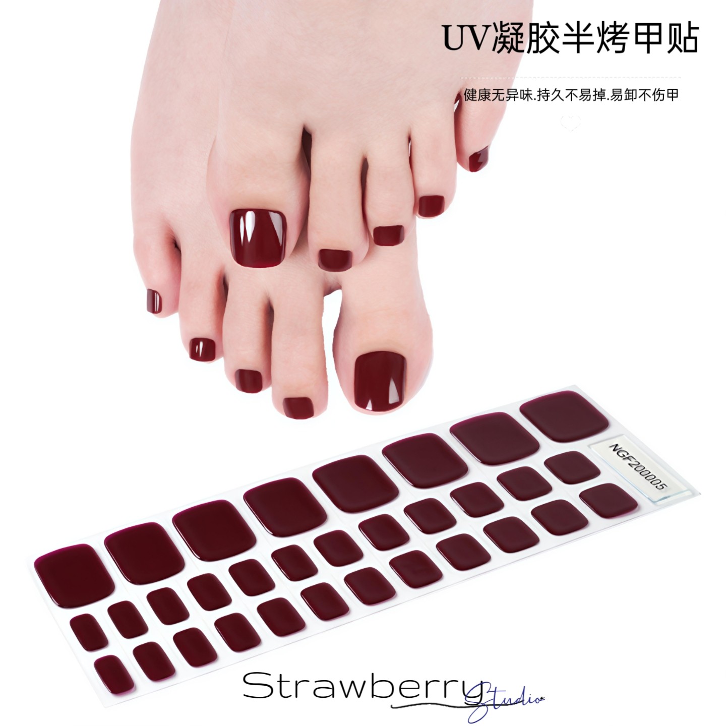 UV凝胶贴半烤半固化脚指甲盖贴片美甲甲油膜贴指甲贴2025红色光疗