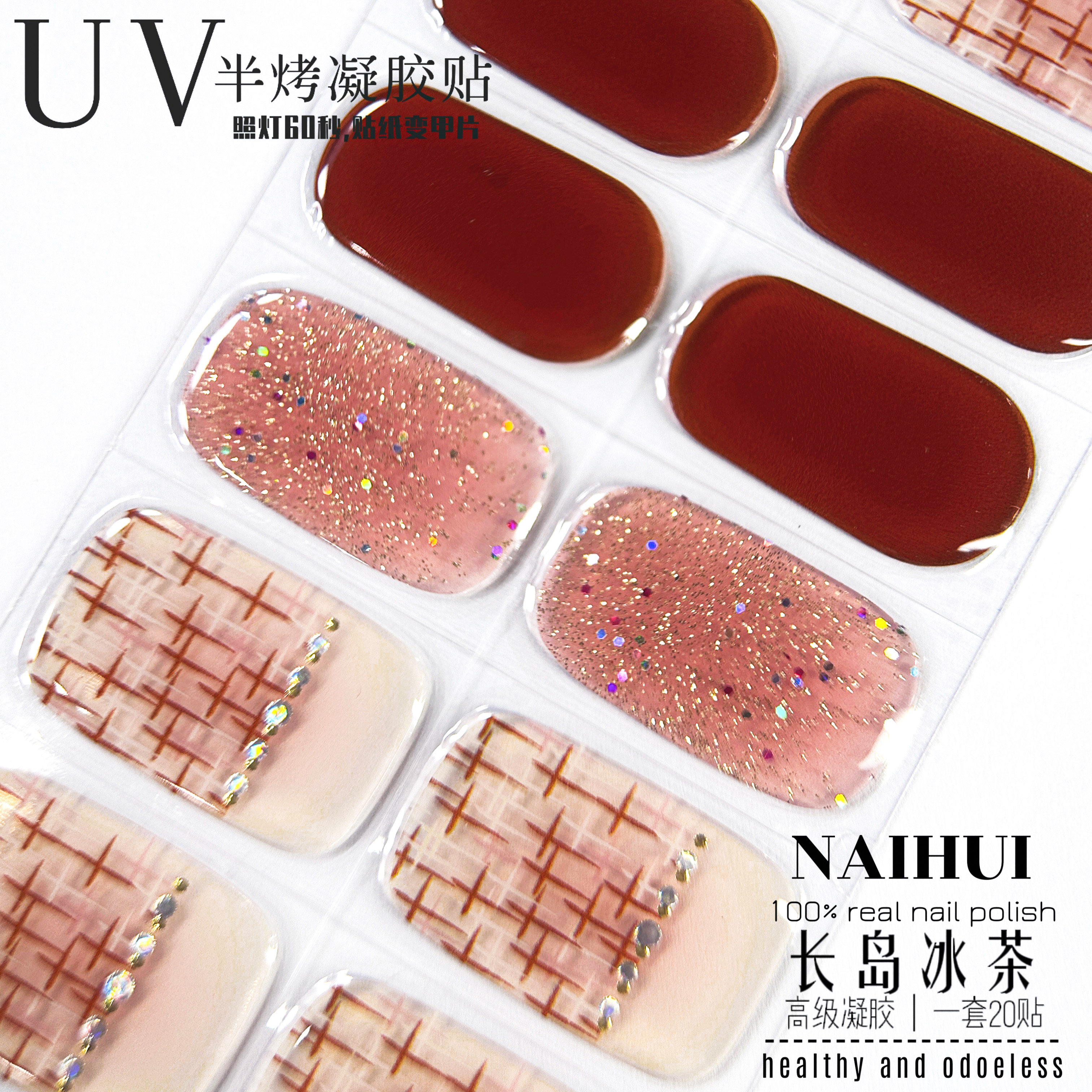 【照灯变硬】UV指甲贴二代甲油膜光疗软甲半烤美甲贴纸片全贴防水